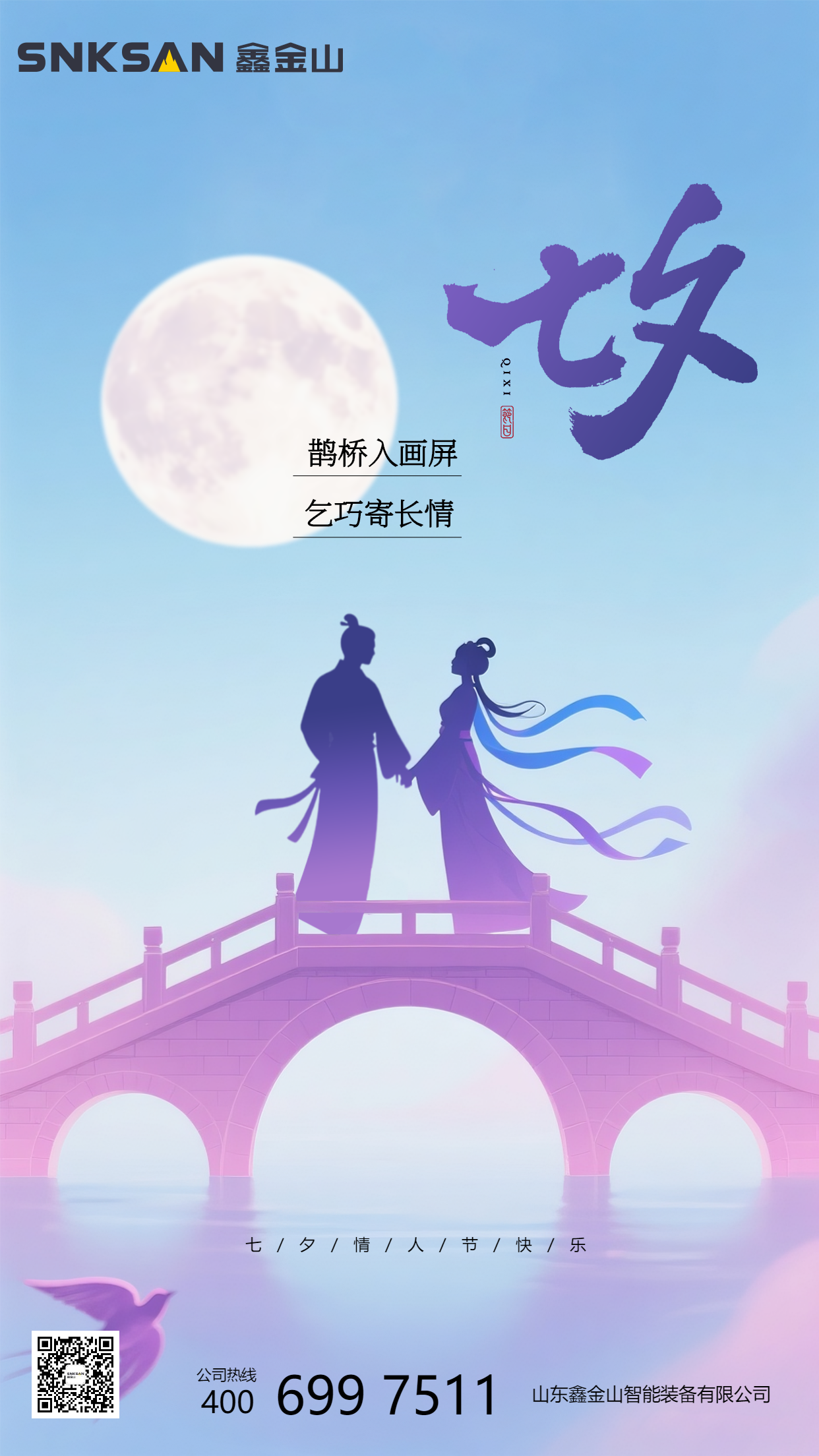 正如牛郎織女不懼銀河迢迢,堅守千年之約,鑫金山亦以堅定的 “智造初心”,跨越地域與時間的界限。從定制化智能裝備研發(fā),到生產(chǎn)線全流程優(yōu)化,再到后期運維保障,我們始終與客戶并肩同行,以卓越的產(chǎn)品品質(zhì)與貼心服務(wù),助力客戶實現(xiàn)產(chǎn)業(yè)升級,共創(chuàng) “智造共贏” 的美好未來。這個七夕,鑫金山以 “智造” 為禮,與您共赴一場跨越歲月的 “長青之約”!