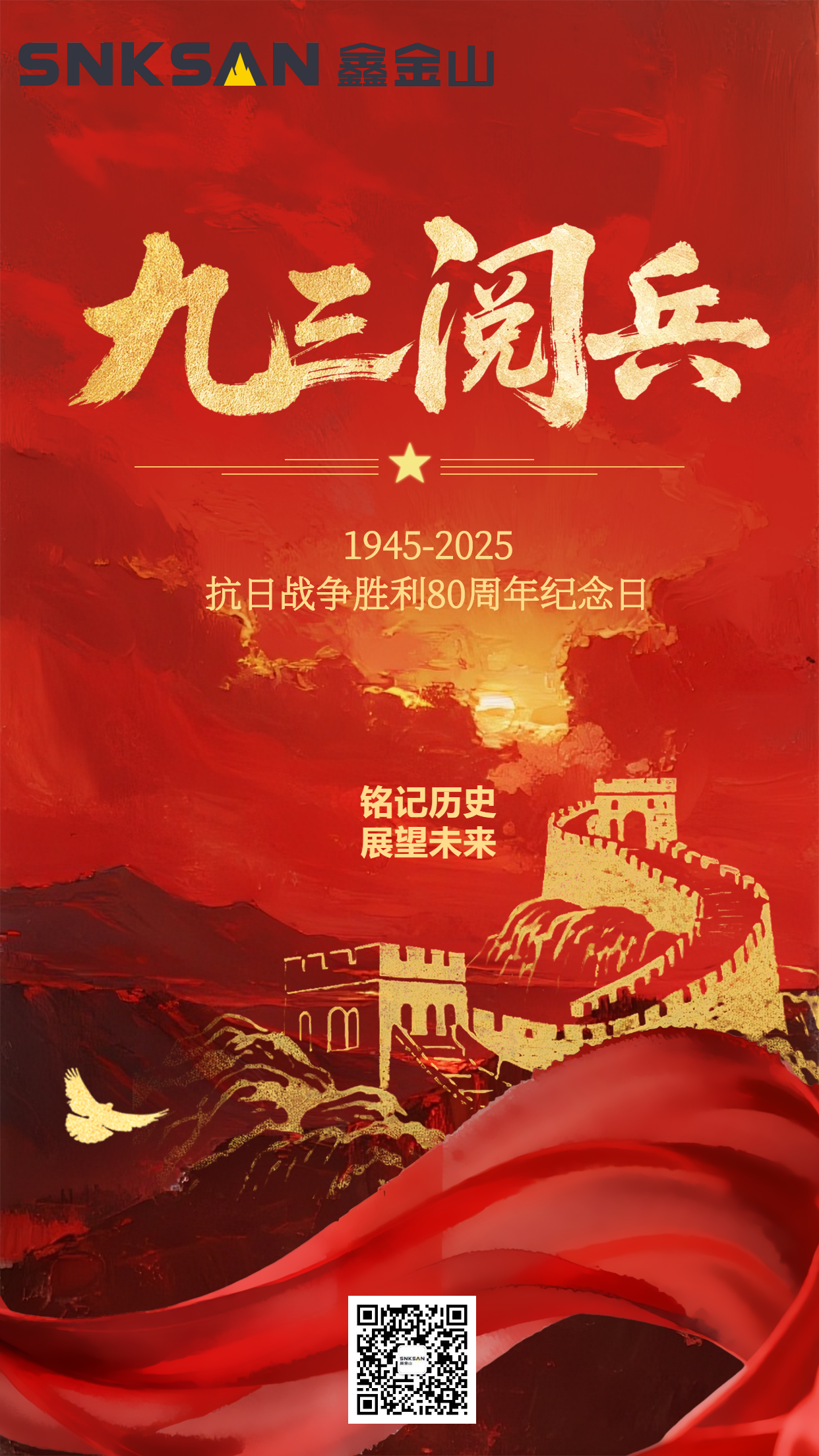 2025 年 9 月 3 日,我們迎來中國人民抗日戰(zhàn)爭暨世界反法西斯戰(zhàn)爭勝利 80 周年的光輝時(shí)刻。80 載時(shí)光荏苒,鐫刻著中華民族在烽火中挺立的不屈脊梁,也見證著華夏兒女賡續(xù)精神、砥礪前行的奮斗征程。鑫金山作為深耕破碎裝備領(lǐng)域的重工企業(yè),始終與祖國發(fā)展同頻共振,既銘記歷史中先輩們的無畏擔(dān)當(dāng),也深知當(dāng)代工業(yè)人肩負(fù)的使命。在這意義非凡的時(shí)刻,鑫金山回望崢嶸歲月、錨定未來航向,以精益求精的破碎技術(shù)、堅(jiān)韌不拔的制造匠心,向偉大勝利致敬,為民族工業(yè)振興注入強(qiáng)勁動能,讓重工力量與民族精神同輝。